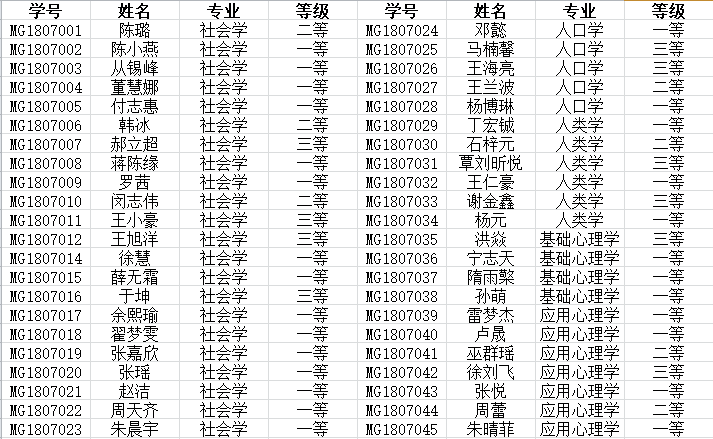 | 按照《2018年研究生学业奖学金评选办法》的相关规定,此次学业奖学金评选对象为2016级、2017级、2018级国内招生计划的全日制研究生(不含非少数民族计划的在职培养员工),2018级研究生主要以入学考试分数为参照标准,2016和2017级研究生则是按照“评选办法”的四个考核维度由员工自评,学院复核的形式。 现就最终结果进行公示,公示期为(2018.11.2-11.6) 初选结果如下: ![]() ![]() ![]() ![]() ![]() ![]() 如对以上结果有异议请联系: shenhui@nju.edu.cn,电话:89680960-440 hzcao@nju.edu.cn,电话:89680954